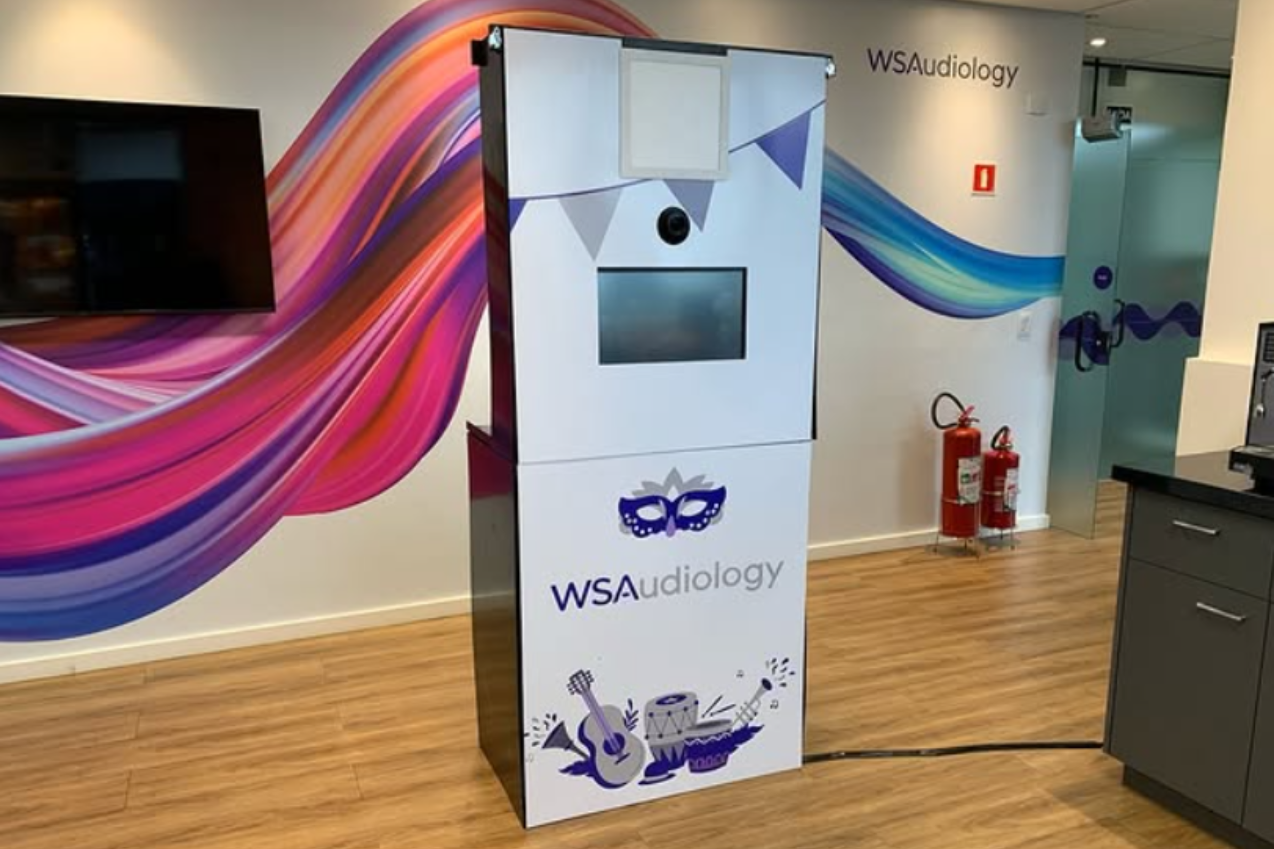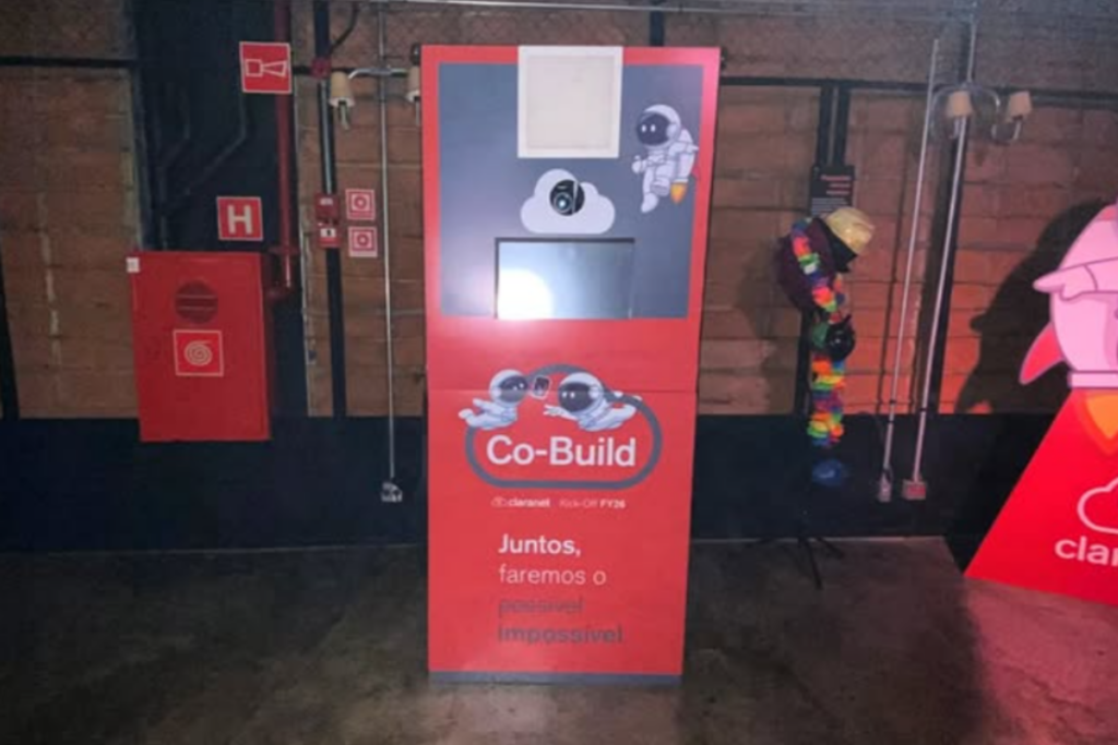 A cabine fotográfica é diferente do totem fotográfico. Ela conta com uma estrutura fechada, de forma que não é preciso se preocupar em ter que escolher o fundo da fotografia. Isso faz com que as pessoas fiquem com ainda mais vontade de tirar fotos, fazer poses e se divertir.